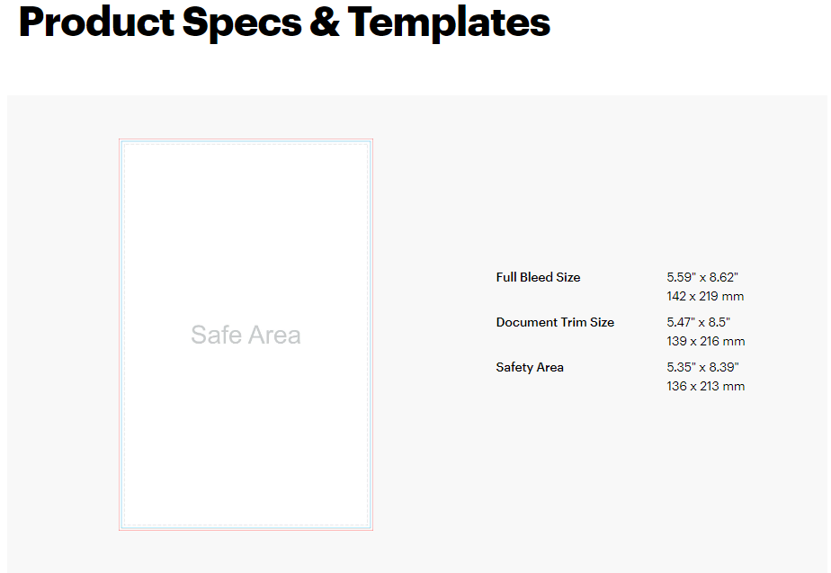 To avoid white edges, extend your design to the full bleed size – but keep text and images within the safety area.